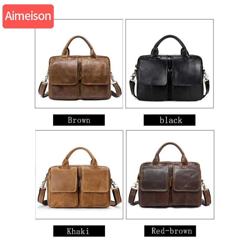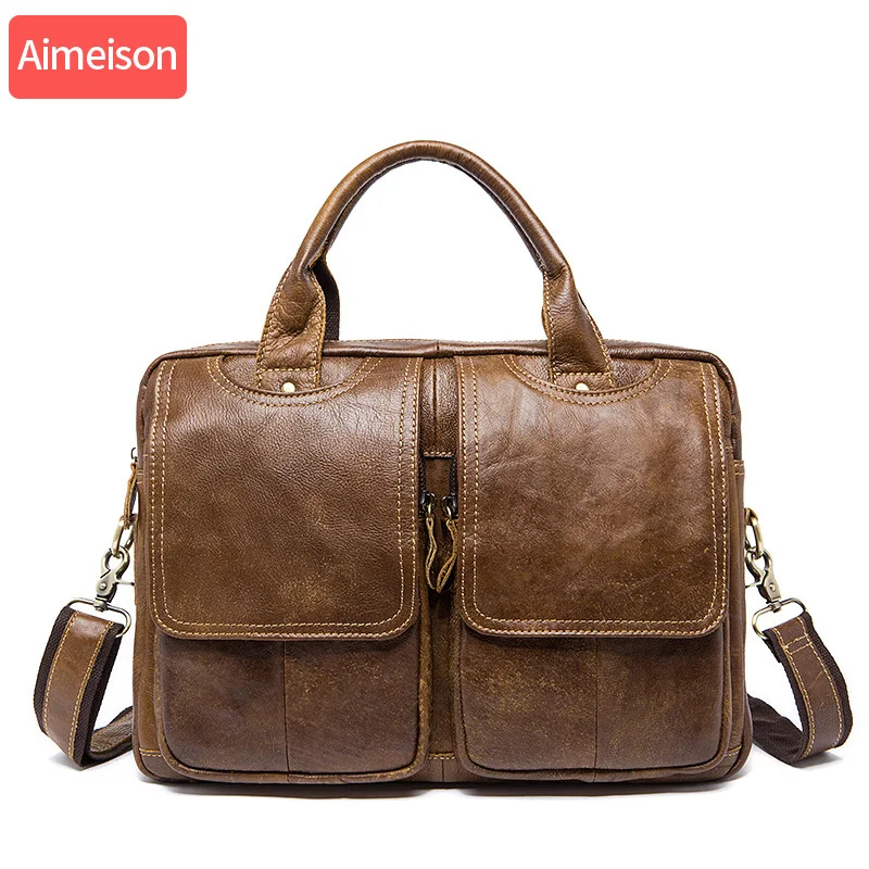 Special Product Aimeison Genuine Leather real leather laptop bag business Handbags Cowhide Men Crossbody Bag Men's